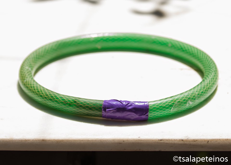 Μετά βάζουμε την κομμένη άκρη μέσα στην άλλη και στερεώνουμε με ταινία.