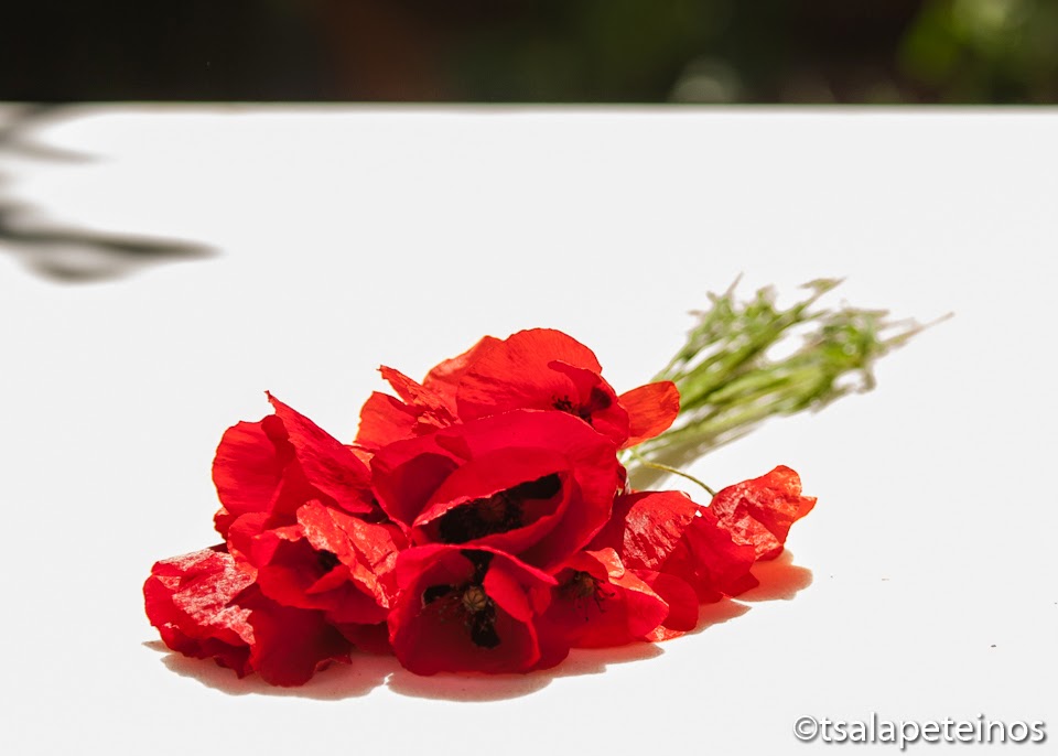 Τέλος προσθέτουμε με τον ίδιο τρόπο, προσεκτικά τις παπαρούνες που είναι πιο ευαίσθητες.